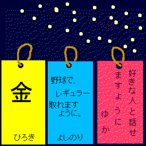 作者コメント:願い事は、友達の願い事の中で、一番多かった願い事ベスト3です。